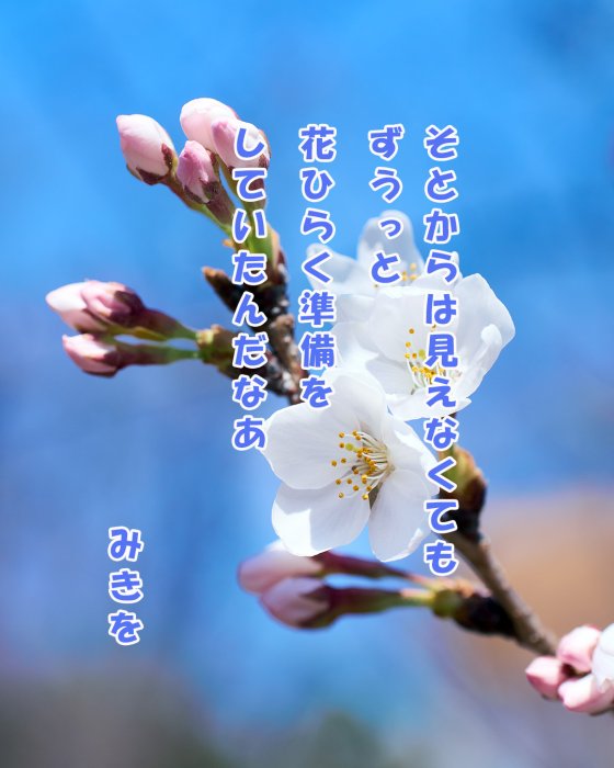 3月 "樱花感想"--用编辑软件、应用程序等将自己的感想写在图片上的樱花图片。