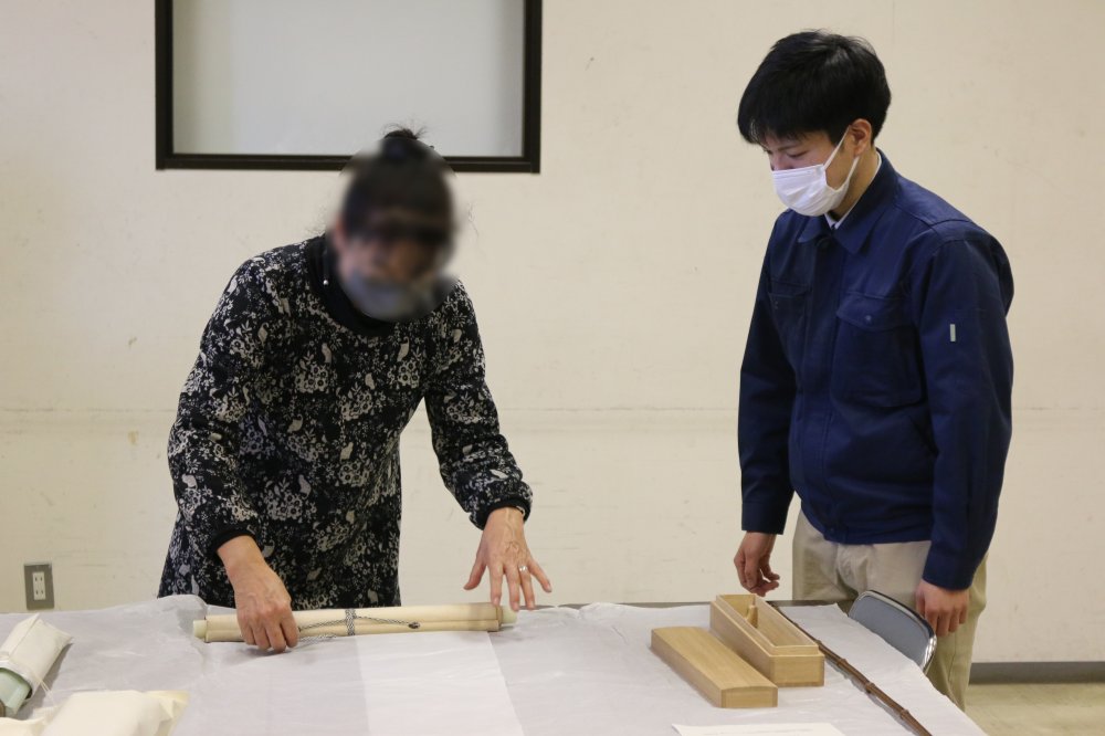作为目前正在地方历史博物馆举行的收藏展 "Kacho Fugetsu Wonderland "的一个相关活动,将组织一个处理挂轴的实践活动。