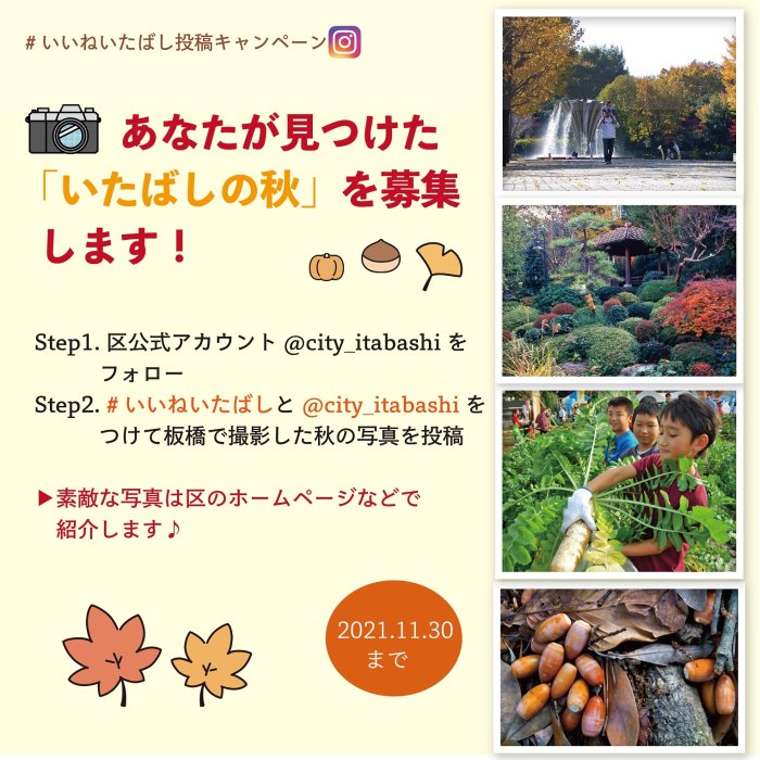 | Event Name | Instagram Posting Campaign: Calling for "Autumn in Itabashi" that you found! |