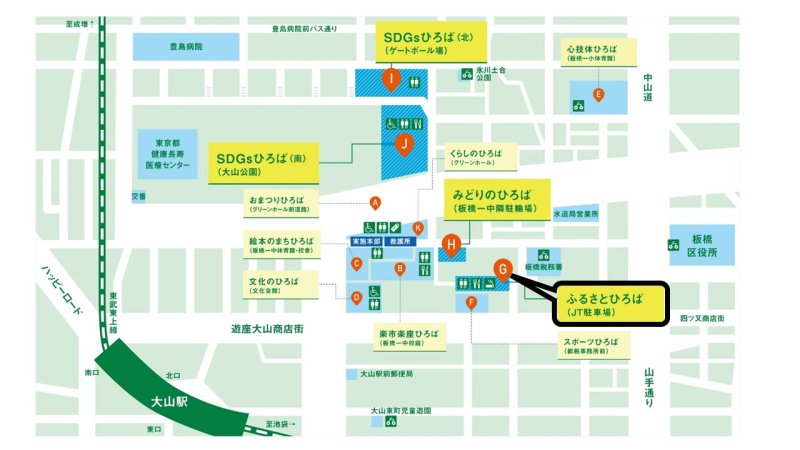 약 100건의 텐트로 붐비는 대시장. 구내의 명점이나 이타바시의 잇핑, 우호 교류 도시의 명물이나 공모에 의한 가게 외, 담배 Pay에 관한 코너도 늘어서 있습니다.