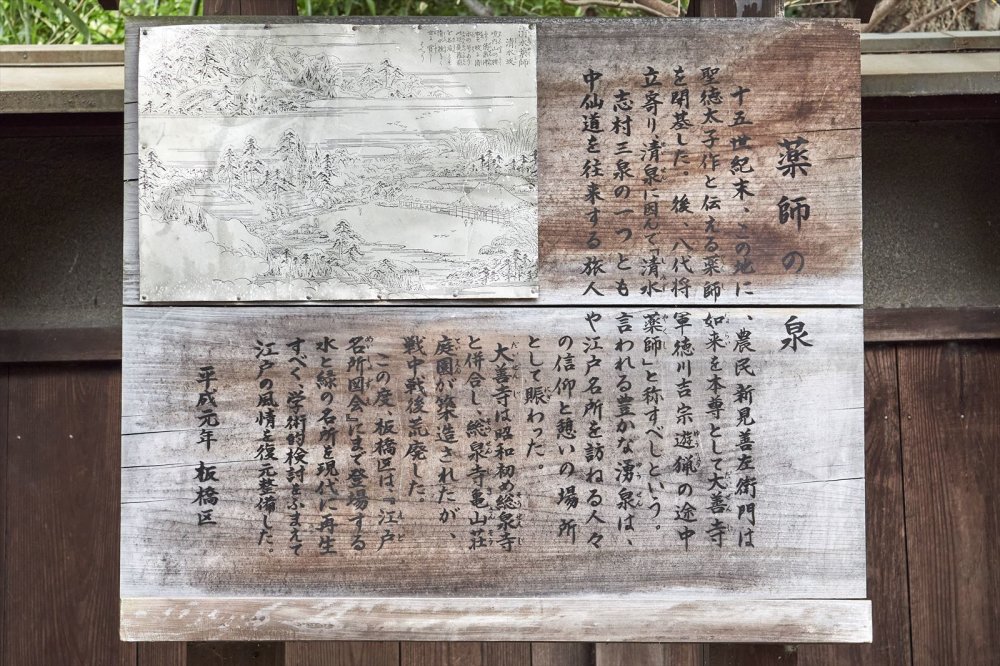 에도 시대 많은 여행자와 문인이 방문한 명소 인 시미즈 약사를 「에도 명소 목발 (えどめいしょずえ) "의 삽화에 따라 복원 한이 정원은 규모는 작지만, 거리의 소란에서는 상상할 수없는 정서와 정적에 휩싸인 공간이 펼쳐져 있습니다.