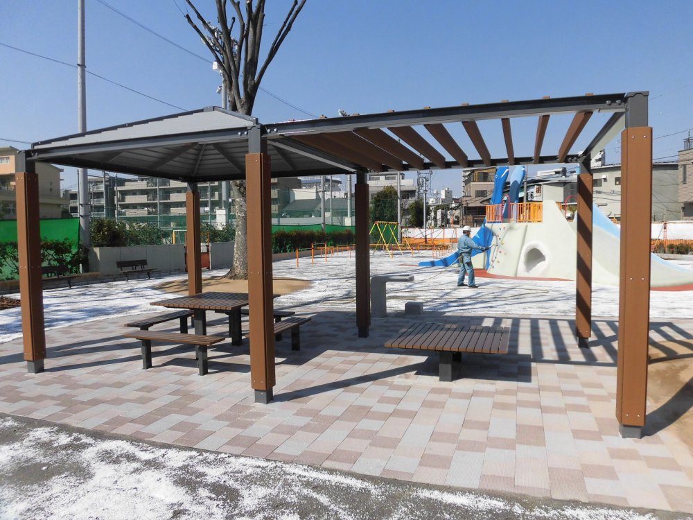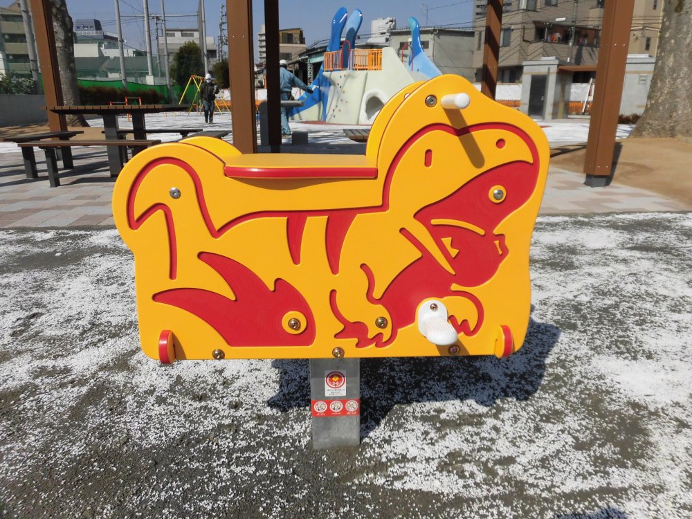 원내에는 괴수 형의 복합 형 놀이기구가 설치되어 슬라이더와 볼더링, 헬스 넷 등이 포함되어 있습니다. 공원의 중심에 우뚝 솟은 괴수의 모습은 바로 공원의 얼굴! 이 밖에 유아도 안심하고 물놀이를 할 수있는 미세 미스트의 도입, 화장실 및 식수대, 원로의 바리어 프리 화 등 공원 전체가 누구나가 이용하기 쉬운 유니버설 디자인에 배려 한 설계로되어 있습니다.