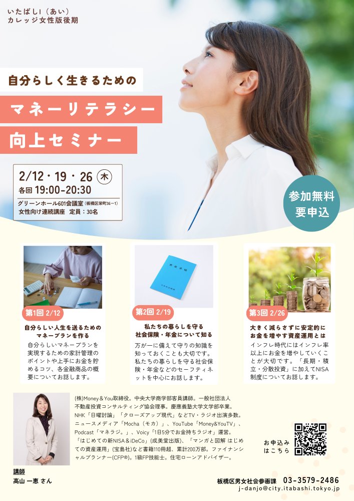 いたばしI(あい)カレッジ女性版後期「自分らしく生きるためのマネーリテラシー向上セミナー」